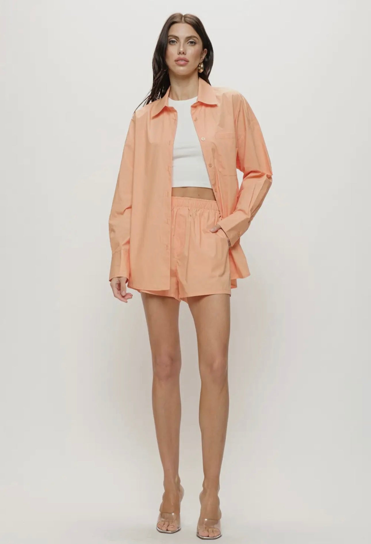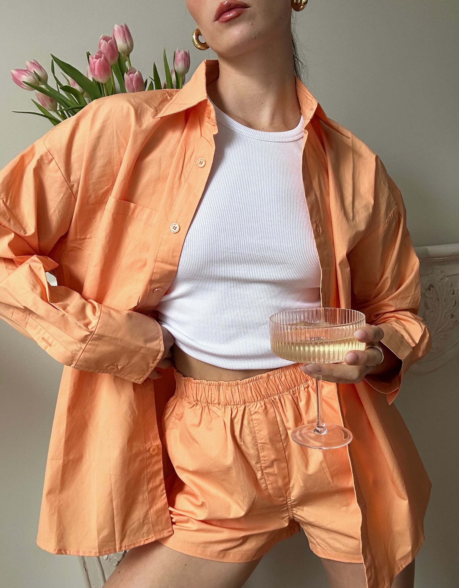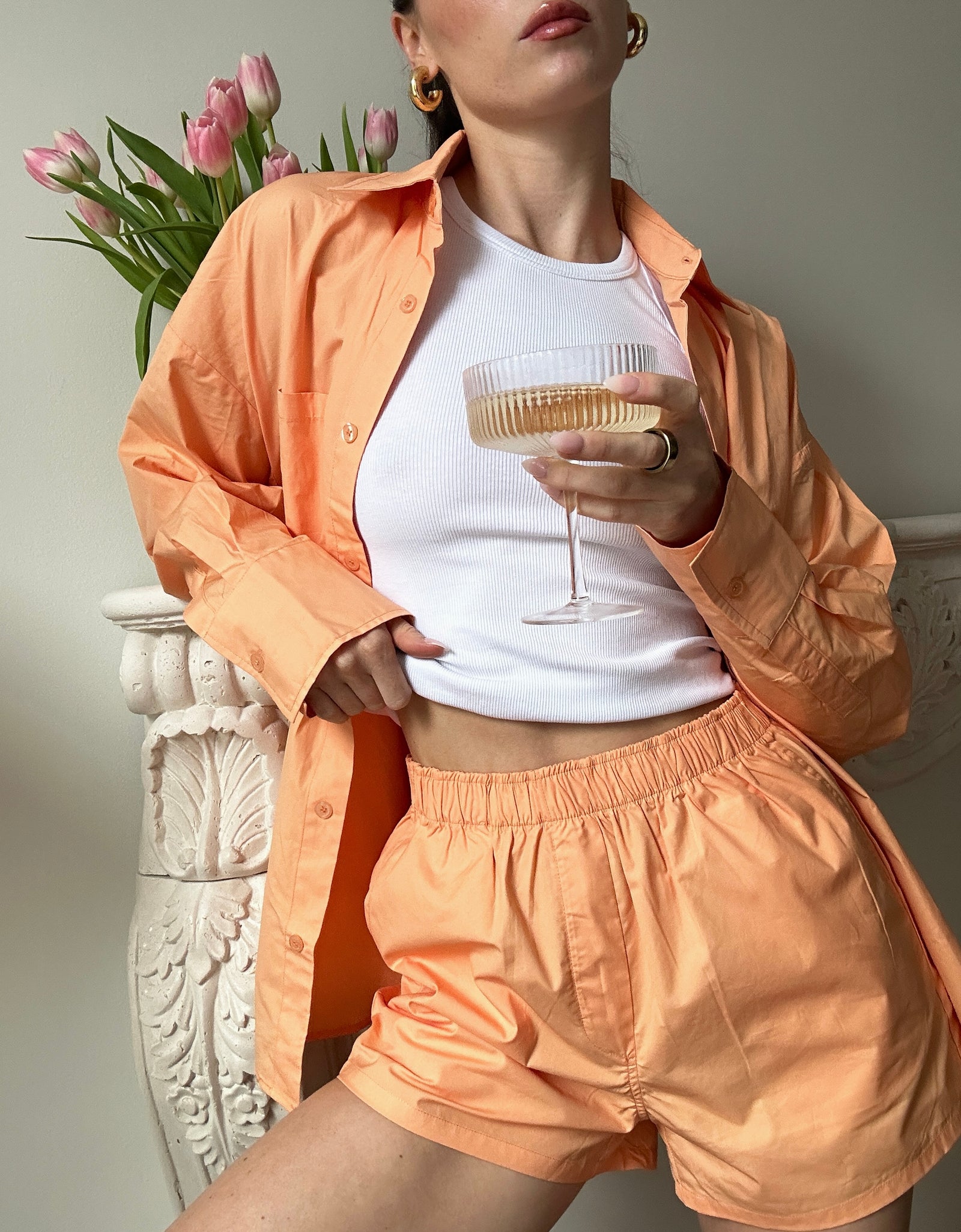 - tangerine orange poplin shorts