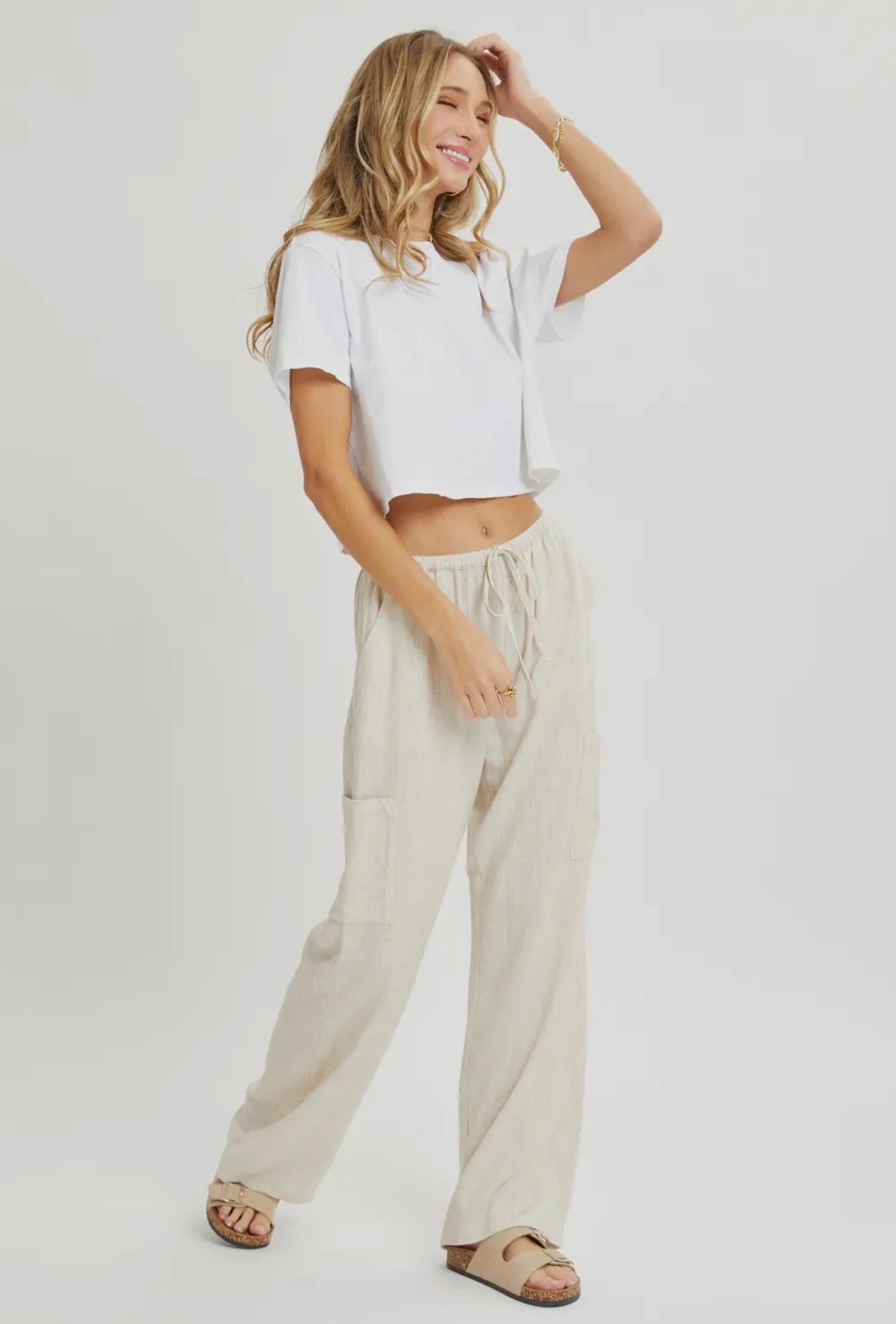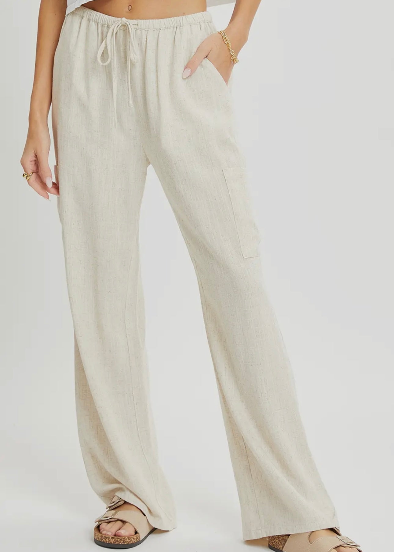 - beige/oatmeal color linen cargo pants