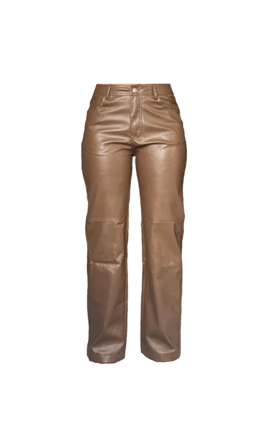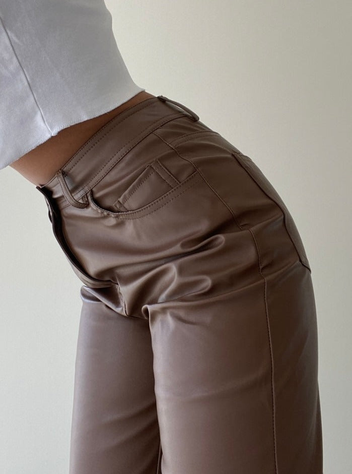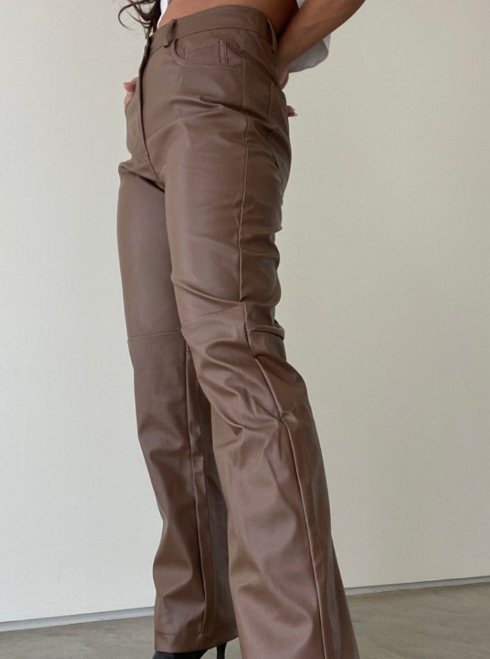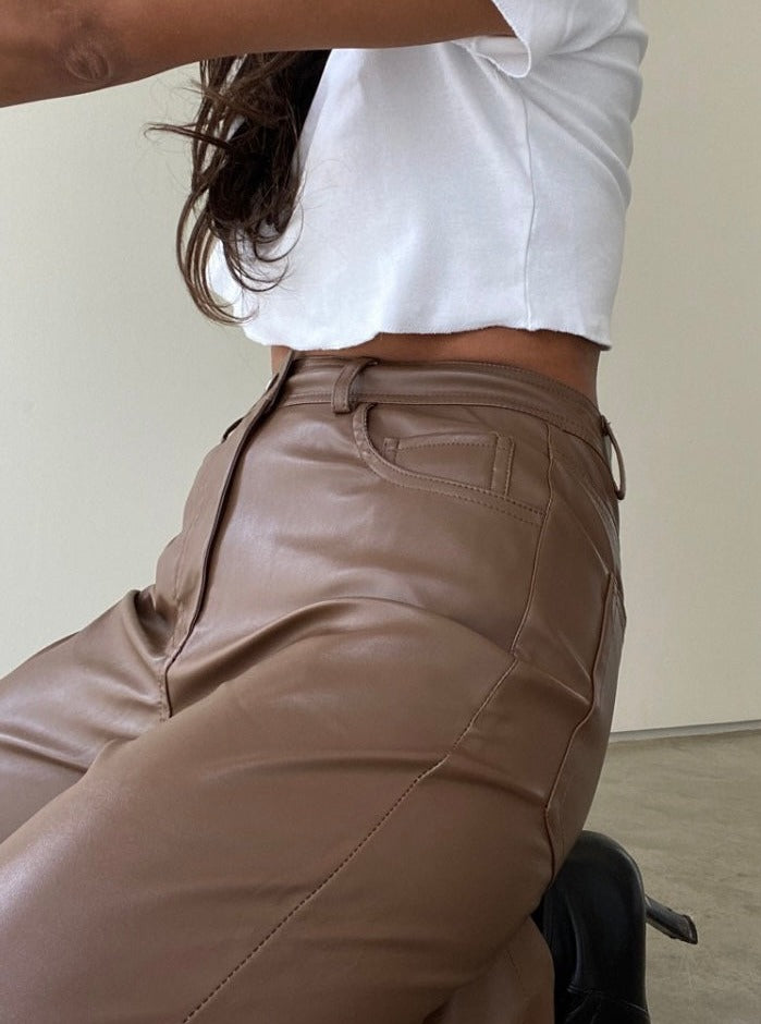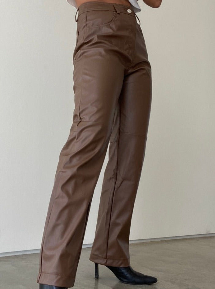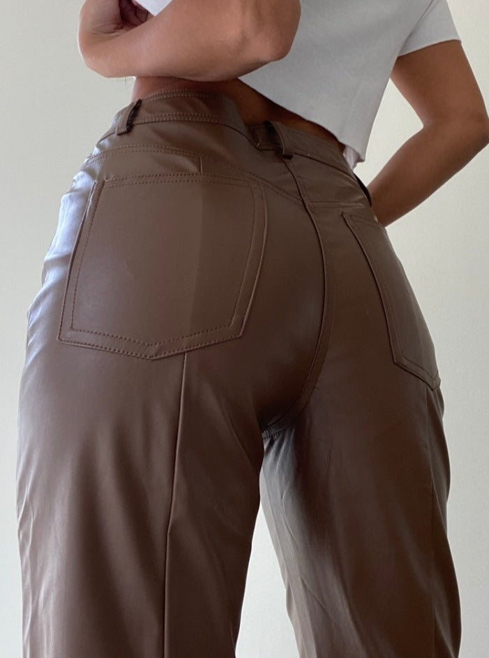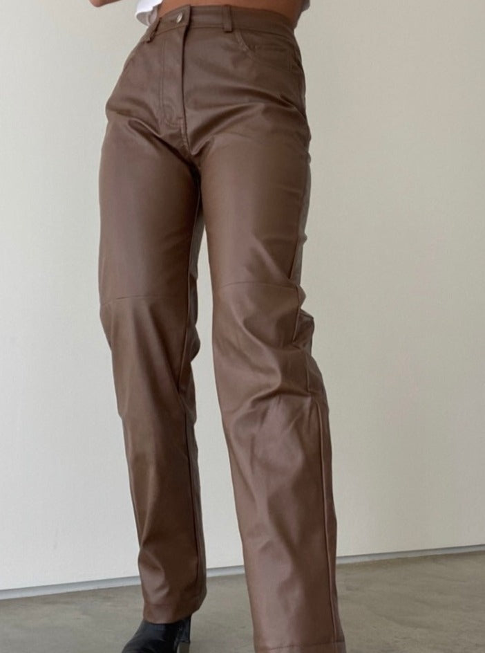- brown vegan leather pants